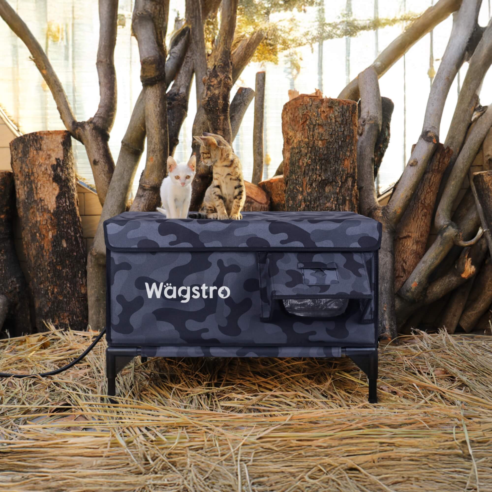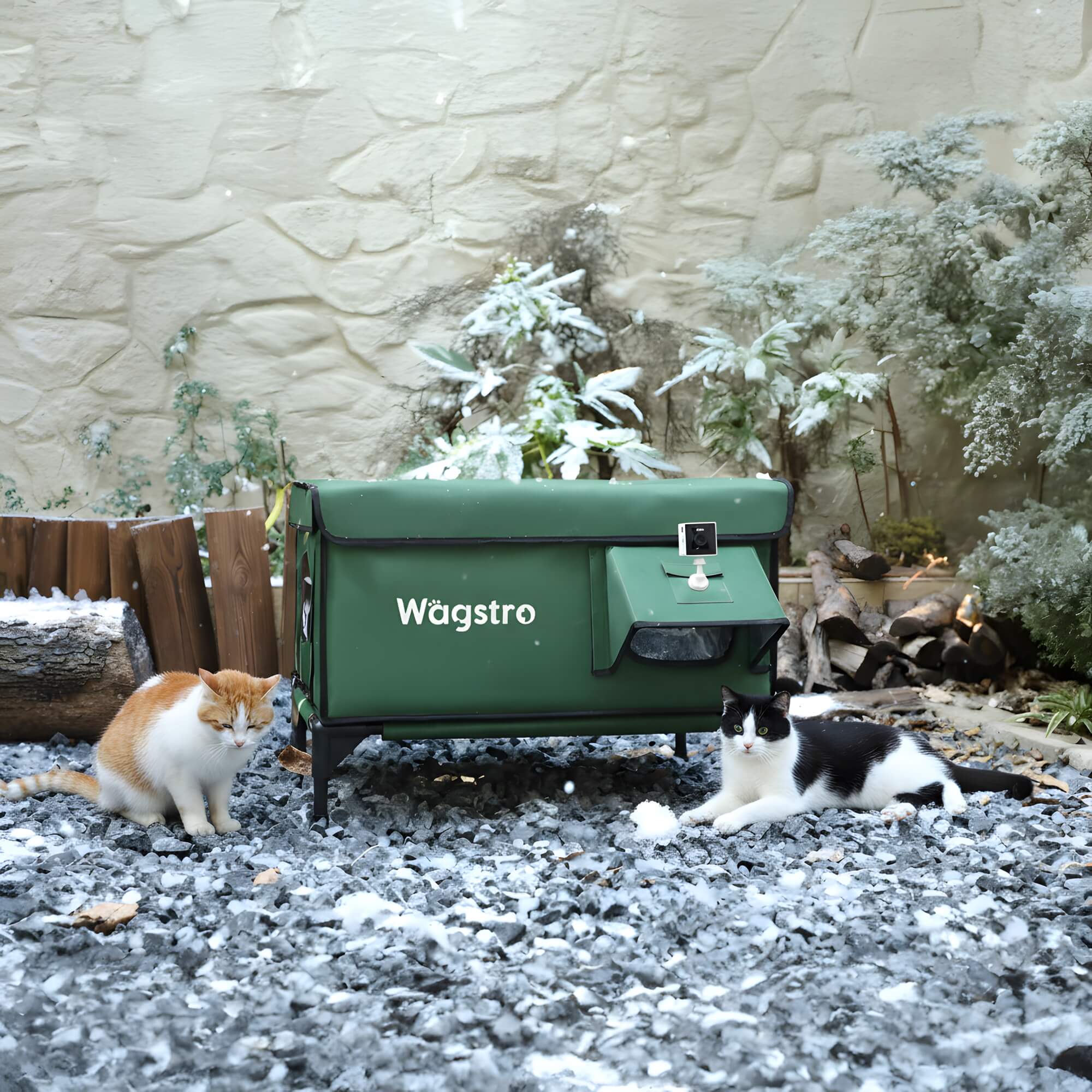 Yes. The shelter features two built-in camera slots—one inside the house and one under the front overhang—designed for optimal monitoring. You can choose to purchase our custom-fit Wagstro camera, or use a compatible camera of your own. It’s a perfect way to keep an eye on your furry guests, day or night.