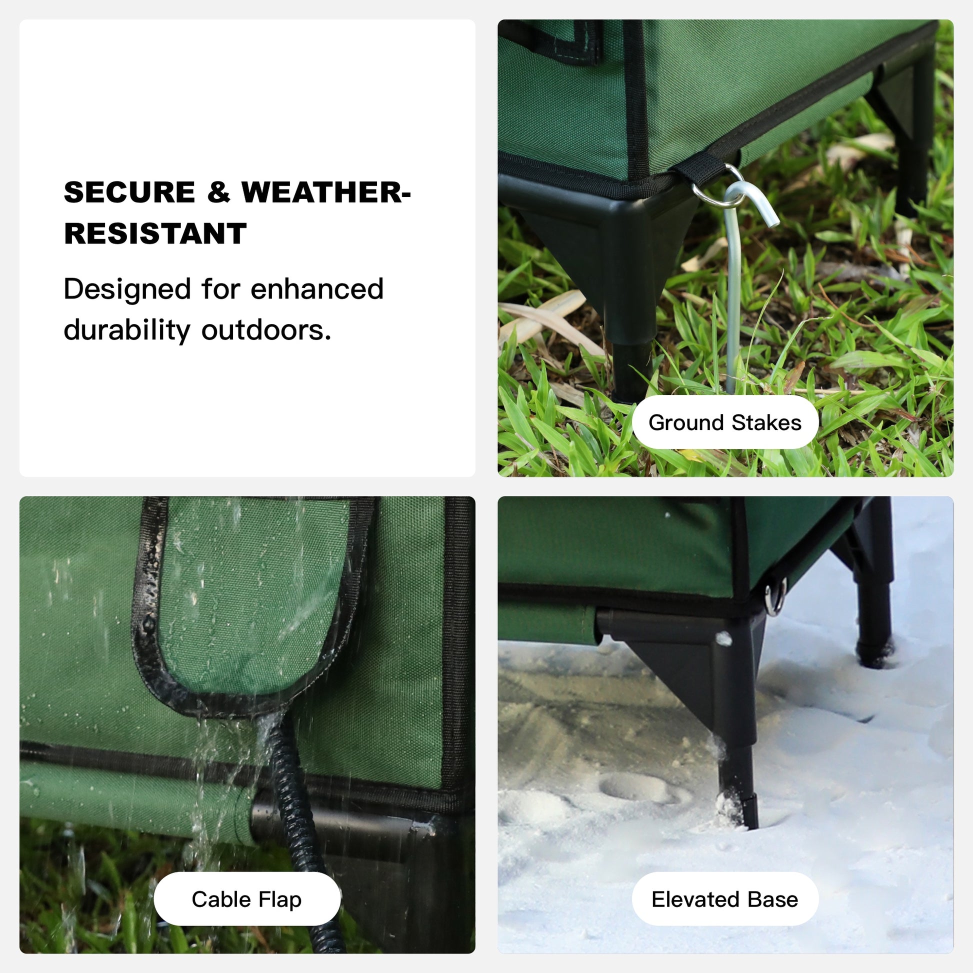 A 6-inch raised base keeps the cat house off wet, cold ground, while reinforced stakes anchor it firmly—even through rainstorms and strong winds.